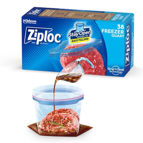 - Ziploc As bolsas para freezer da marca incluem um design Stay Open – elas permanecem abertas quando você quiser, tornando-as realmente fáceis de encher, quase como ter um par extra de mãos na cozinha para ajudá-lo