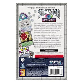 Sagrada: Paixão introduz desafios novos para testar suas habilidades artesanais. Ganhe poderes individuais com as Cartas de Inspiração, use Dados de Vidro Raro para concluir novos objetivos pessoais e receba recompensas ao atender cuidadosamente aos novos objetivos públicos de simetria e equilíbrio. Será o seu vitral uma verdadeira obra-prima?