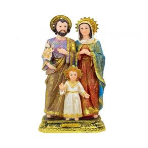 Enfeite decorativo na imagem de Sagrada Família de 41 cm de altura. Detalhes realista.
