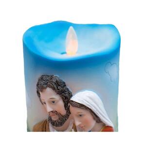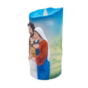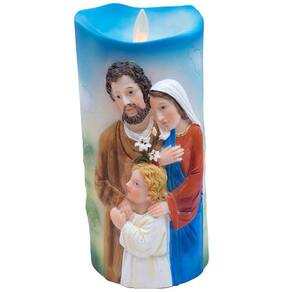 Vela artificial de 17.5 cm de altura formato cilíndrico com imagem de Sagrada Família.