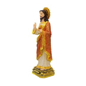 Sagrado Coração De Jesus 51cm Enfeite decorativo na imagem do Sagrado Coração de Jesus de 51 cm de altura cores viva e intensa detalhes realista. Material: resina Dimenções Peso (Kg): 1.80 Altura (cm): 51.00 Largura (cm): 15.00 Comprimento (cm): 14.00 Ean: 05702051007063