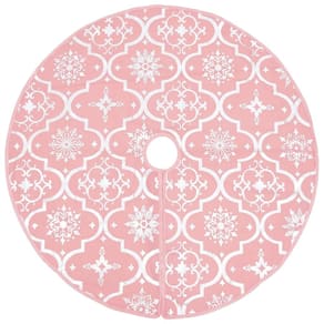 Esta elegante saia de árvore de Natal adiciona um toque de sofisticação à sua decoração festiva, com um tom rosa rico que realmente se destaca. Feito de tecido macio de poliéster, tem um lindo padrão de neve que adiciona elegância ao mesmo tempo que esconde o suporte da árvore para uma aparência arrumada durante as férias
