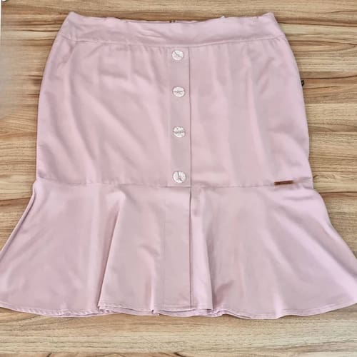 A Saia Feminina Botões Babados Rosa Plus Size traz conforto e elegância, com babados e botões que valorizam qualquer produção feminina.