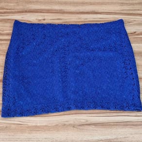 A Saia Curta Guipir Azul Bic Plus Size traz elegância e conforto em um design moderno com renda sofisticada e cor vibrante.