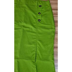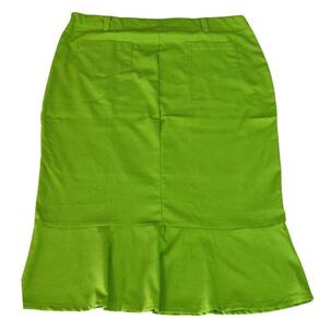 Saia Feminina Linho Longa Fenda Botões Babado Verde Plus size.