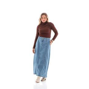 Cós Fino Cintura Alta Aquele ítem clássico, atemporal e versátil a Saia Jeans, pode trazer ao look um visual que vai do elegante ao casual, em um passe de mágica, dependendo da blusa e sapato combinados. Composição:100%Algodão