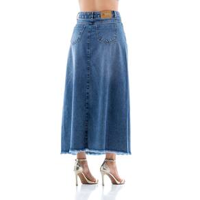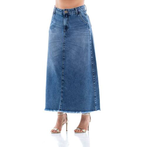 A saia jeans feminina longa evasê é uma peça elegante e confortável, que combina a estrutura do jeans com o estilo fluído e feminino. Seu modelo evasê possui um corte que se ajusta mais no quadril e vai se alargando gradualmente em direção à barra, criando um formato "A". Esse corte confere movimento à saia, proporcionando um visual leve e sofisticado.