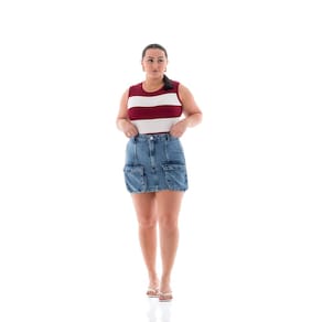 Medidas da Modelo: Altura: 160cm, Cintura: 82cm, Quadril: 102cm
