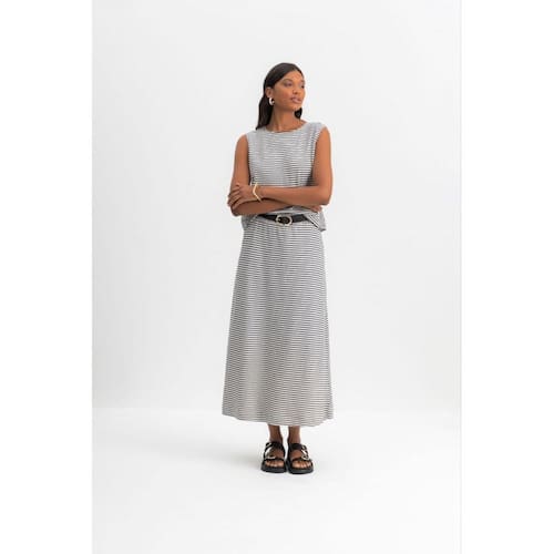 Eleve seu guarda-roupa com a saia longa feminina Essendi, confeccionada em malhão brooklyn texturizado que combina conforto e estilo. Com uma estampa listrada moderna e cós elástico, essa peça se ajusta perfeitamente ao corpo, proporcionando liberdade de movimento. Ideal para compor looks casuais ou sofisticados, combine-a com uma blusa cropped e sandálias para um visual deslumbrante. Aposte na versatilidade e faça da saia Essendi uma peça-chave do seu dia a dia! Marca: Não Informado