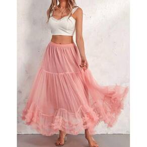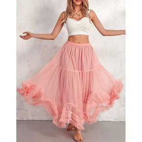 - Características: saias femininas de tule feitas habilmente com uma silhueta evasê, esta saia maxi em camadas até uma bainha justa no tornozelo. A cintura elástica com elasticidade suave garante um ajuste fiel ao tamanho, permitindo movimentos naturais. Com acabamento meticuloso com costuras e babados afiados, cada detalhe mantém a integridade polida — sem fios soltos ou comprometimento do artesanato
