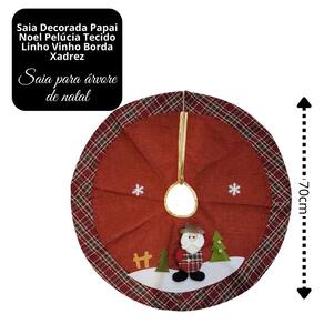 Saia para Árvore de Natal Linho Vinho 70cm Pelúcia Papai Noel