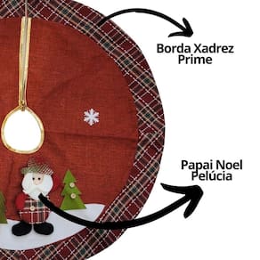 Saia para Árvore de Natal Linho Vinho 70cm Pelúcia Papai Noel