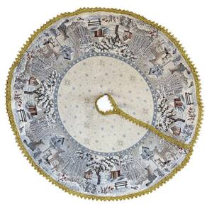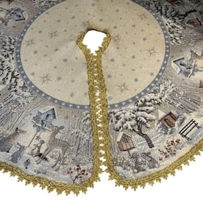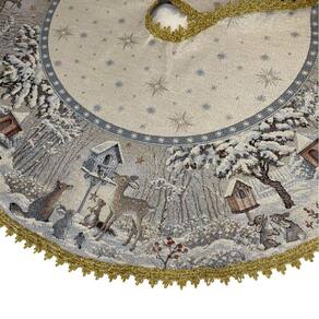 Saia para arvore de Floresta Encantada redonda D90cm, produzida em Gobelin europeu de alta qualidade com desenho localizado. Acabamento com passamanaria dourada.