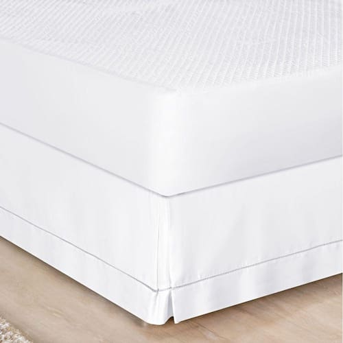 Saia para colchão cama box produzida em tecido Percal 180 Fios 80% algodão e 20% poliéster com acabamento em ponto palito. A saia ajuda a preservar a cama box contra possíveis danos, aumentando sua vida útil. Prática, fácil de colocar e disponível em tons neutros, ainda complementa a decoração com requinte e delicadeza.