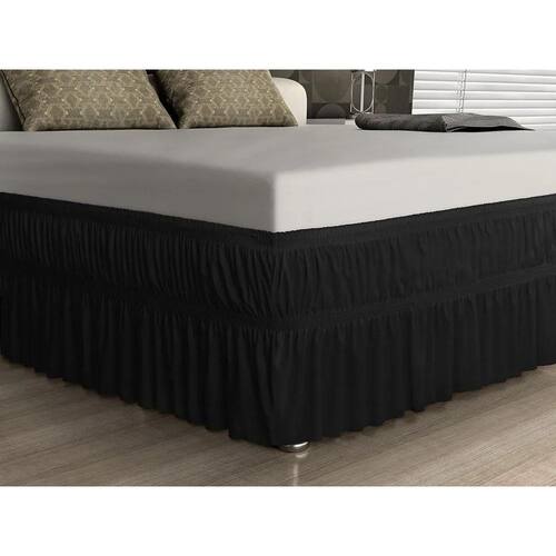 Saia para cama box solteiro preto elástico duplo Descrição