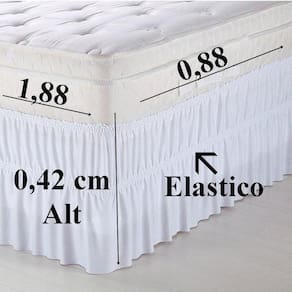 Saia Box Casal Solteiro, para a proteção de manchas em volta da base da cama,ela é de elástico, tecido 100% Poliéster, tecido de Qualidade. Dimensões: Comprimento, largura, altura 1,88m x 88cm x 42 cm .