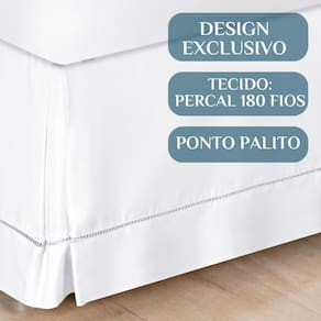 Não perca a oportunidade de transformar seu quarto em um verdadeiro refúgio de conforto e elegância com nossa saia para cama king size em ponto palito. Adquira já a sua e experimente o luxo e o conforto que você merece em todas as suas noites de sono.