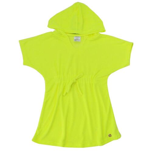 Saída de Praia Infantil Atoalhada com Capuz Amarelo Neon Everly - Amarelo - 4-6 Anos