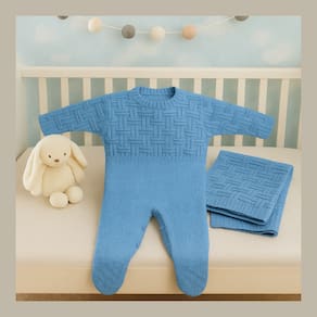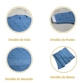 O conjunto traz o toque aconchegante do tricot para vestir seu amor com muito estilo. A manta e o macacão são peças versáteis, Perfeito para presentear!