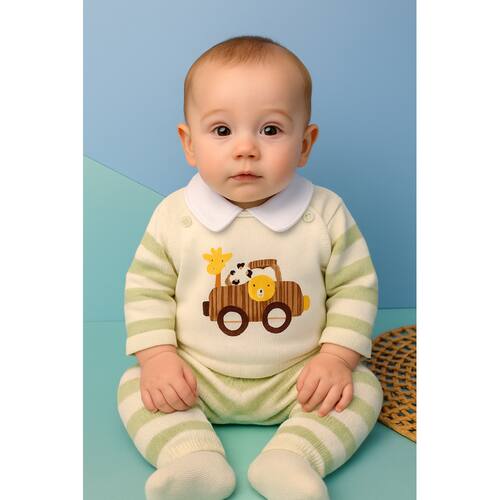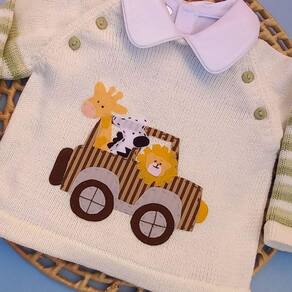 Conjunto Bebê em Tricô Casaco Salopete e Manta Acompanha1 Casaco1 Salopete1 Manta