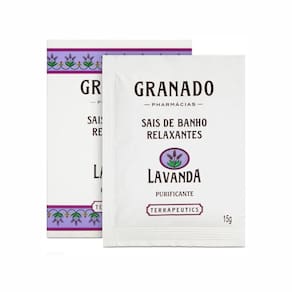 Sais de banho granado terrapeutics relaxantes lavanda 5x15g sais de banho granado terrapeutics relaxantes lavanda 5x15g com ação relaxante e energética, granado terrapeutics lavanda sais de banho promove sensação de bem-estar. Pode ser utilizado na banheira, no chuveiro e como escalda-pés. Ativa a circulação sanguínea para que sua pele fique com toque macio, sedoso e aveludado. Modo de uso: encha uma banheira com água e, em seguida, despeje todo o conteúdo do envelope. Depois entre na banheira. No chuveiro, misture os sais de banho com o hidratante para usá-lo como esfoliante ou dissolva em uma vasilha de água morna e despeje sobre o corpo.