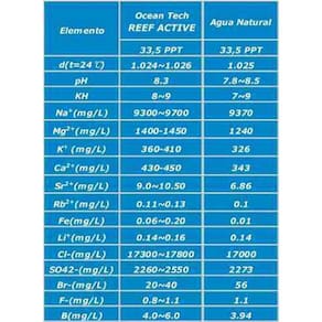 Principais Características: I - Adota um avançado processo de produção a partir de culturas selecionadas de bactérias nitrificantes e fotossintetizantes de altíssima atividade biológica para a decomposição de resíduos; II - Contém substâncias bioativas, tais como proteínas, vitaminas e carotenoides naturalmente encontradas na água do mar que promovem a coloração e o crescimento de peixes e corais marinhos; III - Contém equilíbrio perfeito de mais de 70 traços de elementos encontrados em águas marinhas; IV - Enriquecido com vitaminas B1, B2 e coloides essenciais para a regeneração de tecidos e saúde de animias marinhos; V - Dose extra de cálcio, magnésio e potássio, asseguram sua disponibilidade prolongada e otimiza a saúde e coração dos peixes, corais e invertebrados; VI - Reef Active passa por um rigoroso controle de qualidade, que garante que os finíssimos grãos sejam rapidamente diluídos na água.