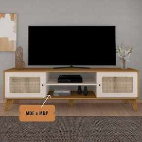 - 1- Rack Bancada Charlotte Para Tv 75 Carvalho | Off White1- Mesa de Centro Jasmin 100% MDF Off White / Carvalho1- Mesa De Canto e Cabeceira Mesinha de Apoio Charlotte Carvalho | Off White1- Aparador Buffet Charlotte 1 Porta - Carvalho / Off White / Palha
