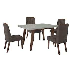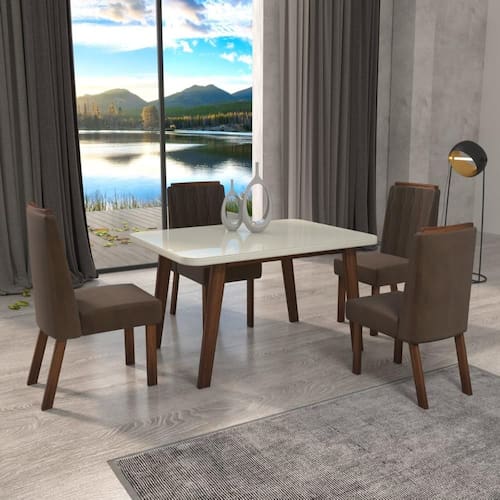 Conjunto Sala de Jantar Alba Tampo MDF/Vidro Amêndoa 130x90 Bom Pastor com 4 Cadeiras