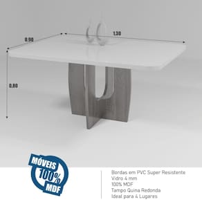 Conjunto Sala de Jantar Roma Tampo MDF/Vidro 130x90cm 4 Cadeiras Bom Pastor