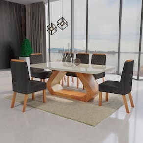 A Sala de Jantar 160x80 Lottus Tampo MDF/Vidro Bom Pastor com 6 Cadeiras combina sofisticação e funcionalidade. Produzido 100% em MDF, este conjunto é resistente e de alta qualidade, ideal para valorizar qualquer espaço.