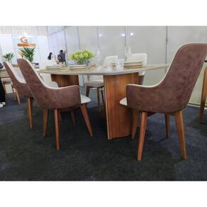 Sala de Jantar com Vidro 6 Cadeiras 1,80x1,0m - River - Requinte Salas A Mesa River é a pedida certa para você deixar sua casa mais moderna. Com sua base elegante e tampo em MDF laqueado com vidro, essa mesa junta resistência e durabilidade com elegância. A Cadeira Sáfira é a junção de beleza, elegância e modernidade. Seu assento curvo faz com que você se sinta abraçado quando senta, deixando você extremamente confortável e relaxado. A base de madeira maciça traz um sustento e uma resistência a mais para a cadeira. As suas refeições merecem esse momento, não é mesmo? Confira e aproveite! Por se tratar de madeira maciça, nossa fabricação é toda manual, o que confere ao produto um acabamento impecável. Isso garante a beleza do produto e o conforto. Cada peça é cuidadosamente selecionada e trabalhada para criar uma obra de arte única. Devido à fabricação manual, o tempo solicitado é um pouco maior do que o convencional por isso pedimos um tempo um pouco maior do que os demais produtos. No entanto, garantimos que o resultado vale a pena. Aproveite! Não perca tempo e compre logo a sua sala de jantar. Fazem parte do anúncio 1 Mesa de Jantar River 1,80x1,0m 6 Cadeiras Sáfira Obs. Objetos de decoração não inclusos. Particularidades da Sala de Jantar Características da Mesa: - Base em MDF laminado; - Tampo em MDF com vidro de 3mm sobreposto; - Tampo retangular; - Design moderno - Madeira ecologicamente correta. Particularidades da Cadeira: Características: - Madeira Maciça Tauari seca em estufa - Madeira imunizada - Espuma D-26 no assento - Espuma D-20 no encosto - Para tecido Mesna (courano) nas costas, vai sem o desenho - Estrutura reforçada - Ecologicamente correta - Peso suportado 150kg Dimensões da Mesa: Altura: 79 centímetros Largura: 1,80 metros Profundidade: 1,0 metro Dimensões da Cadeira: Altura: 93 centímetros Largura: 49 centímetros Profundidade: 50 centímetros Informações Importantes: - Produtos podem apresentar diferenças de tonalidades entre a foto na tela e o produto real, devido a calibração de cor de tela. - Limpar com flanela ou pano macio. Não utilizar álcool. Não utilizar produtos abrasivos ou corrosivos. - Nós prezamos pela qualidade da entrega em primeiro lugar, trabalhamos com transportadoras altamente selecionadas e os melhores materiais de embalagem. - As cadeiras vão montadas nas caixas e embaladas. Necessário fixar o assento e o encosto e parafusar, não necessita da montagem de um profissional. A mesa vai semi montada, necessário fixar o tampo a base. - Objetos de decoração não incluso. - Certifique-se de que o produto caiba em elevadores e vãos de escadas, não fazemos içamentos ou desmontagens de produtos. Quaisquer despesas deste tipo ficam a cargo do cliente. - Garantia de 3 meses contra defeitos de fabricação. Marca: Requinte Salas