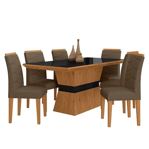 O Conjunto Sala de Jantar Nazca com 6 Cadeiras Vitória exala projetada em seu design, combinação perfeita de materiais luxuosos e detalhes sofisticados, criando um ambiente encantador e convidativo.