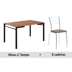 Sala de Jantar Completa 1526 Aço c/Tampo Madeirado 136x90cm e 6 Cadeiras 1700 Preto/Cromado/Conhaque - Carraro Abaixo segue os produtos do KIT: Sala de Jantar Completa 1526 Aço c/Tampo Madeirado 136x90cm e 6 Cadeiras 1700 Preto/Cromado/Conhaque - Carraro