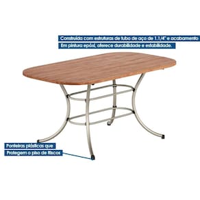 Mesa de Sala Jantar 1547 Aço c/ Tampo Madeirado 160x90cm Preto/Legno - Carraro