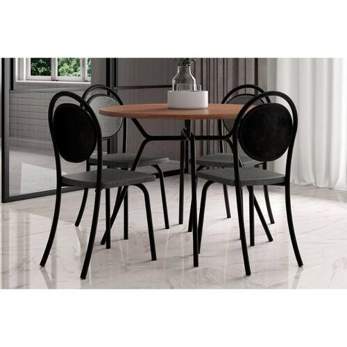 Sala de Jantar Completa 1588 c/ Tampo Madeirado 100cm e 4 Cadeiras 1738 Preto - Carraro Abaixo segue os produtos do KIT: Sala de Jantar Completa 1588 c/ Tampo Madeirado 100cm e 4 Cadeiras 1738 Preto - Carraro