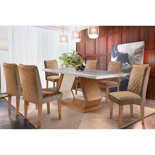 Sala de Jantar Completa Alvorada c/ Tampo Madeirado Canto Reto 180cm + 6 Cadeiras Jade Imbuia/Chocolate Capuccino - Rufato Abaixo segue os produtos do KIT: Sala de Jantar Completa Alvorada c/ Tampo Madeirado Canto Reto 180cm + 6 Cadeiras Jade Imbuia/Chocolate Capuccino - Rufato Mesa de Sala Jantar Alvorada + Tampo Madeirado Reto 180x90cm Imbuia/Off White - Rufato
