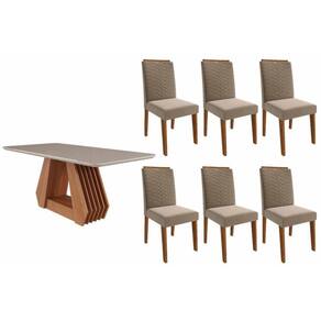 Sala de Jantar Completa Ágata Tampo Madeirado c/ Vidro 180x90cm e 6 Cadeiras Clarice Cinamomo/Off White - Carvalho/Suede Joli Capuccino - Cimol Abaixo segue os produtos do KIT: Sala de Jantar Completa Ágata Tampo Madeirado c/ Vidro 180x90cm e 6 Cadeiras Clarice Cinamomo/Off White - Carvalho/Suede Joli Capuccino - Cimol