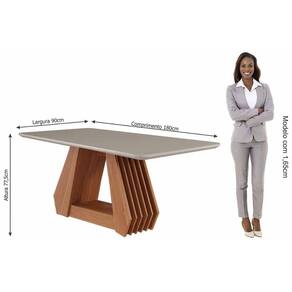 Mesa de Sala Jantar Ágata c/ Tampo Madeirado Vidro 180x90cm Cinamomo/Off White - Cimol