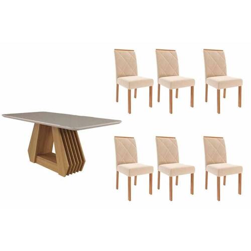 Sala de Jantar Completa Ágata Tampo Madeirado c/ Vidro 180x90cm e 6 Cadeiras Fernanda Nature/Off White - Carvalho/Suede Nude Bege - Cimol Abaixo segue os produtos do KIT: Sala de Jantar Completa Ágata Tampo Madeirado c/ Vidro 180x90cm e 6 Cadeiras Fernanda Nature/Off White - Carvalho/Suede Nude Bege - Cimol