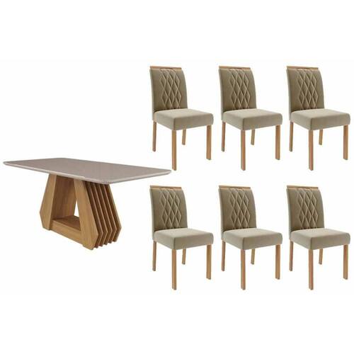 Sala de Jantar Completa Ágata Tampo Madeirado c/ Vidro 180x90cm e 6 Cadeiras Juliana Nature/Off White - Carvalho/Suede Joli Capuccino - Cimol Abaixo segue os produtos do KIT: Sala de Jantar Completa Ágata Tampo Madeirado c/ Vidro 180x90cm e 6 Cadeiras Juliana Nature/Off White - Carvalho/Suede Joli Capuccino - Cimol