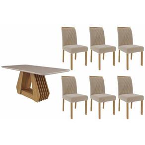 Sala de Jantar Completa Ágata Tampo Madeirado c/ Vidro 180x90cm e 6 Cadeiras Juliana Nature/Off White - Carvalho/Suede Nude Bege - Cimol Abaixo segue os produtos do KIT: Sala de Jantar Completa Ágata Tampo Madeirado c/ Vidro 180x90cm e 6 Cadeiras Juliana Nature/Off White - Carvalho/Suede Nude Bege - Cimol