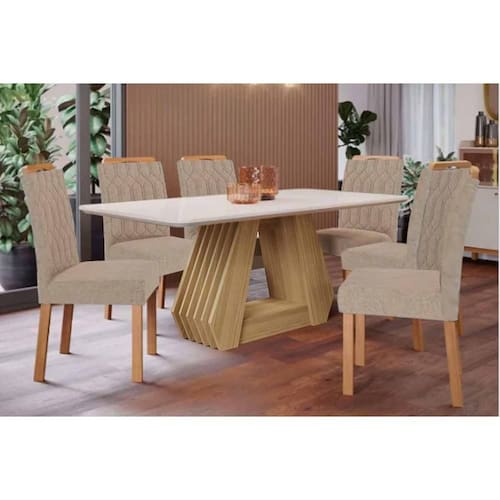 Sala de Jantar Completa Ágata Tampo Madeirado c/ Vidro 180x90cm e 6 Cadeiras Paola Nature/Off White - Carvalho/Linho Bege - Cimol Abaixo segue os produtos do KIT: Sala de Jantar Completa Ágata Tampo Madeirado c/ Vidro 180x90cm e 6 Cadeiras Paola Nature/Off White - Carvalho/Linho Bege - Cimol