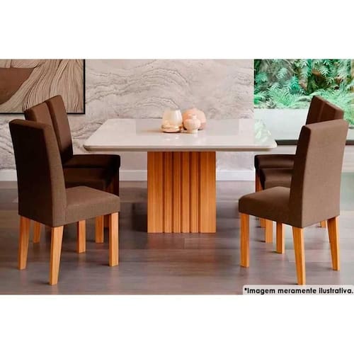 Sala de Jantar Completa Ana c/ Tampo Madeirado c/ Vidro 130x130cm e 6 Cadeiras Maia Nature/Suede Mascavo Chocolate - Cimol Abaixo segue os produtos do KIT: Sala de Jantar Completa Ana c/ Tampo Madeirado c/ Vidro 130x130cm e 6 Cadeiras Maia Nature/Suede Mascavo Chocolate - Cimol