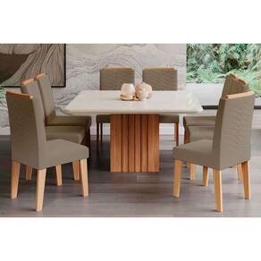 Sala de Jantar Completa Ana c/ Tampo Madeirado c/ Vidro 130x130cm e 8 Cadeiras Clarice Nature/Suede Joli Chocolate - Cimol Abaixo segue os produtos do KIT: Sala de Jantar Completa Ana c/ Tampo Madeirado c/ Vidro 130x130cm e 8 Cadeiras Clarice Nature/Suede Joli Chocolate - Cimol