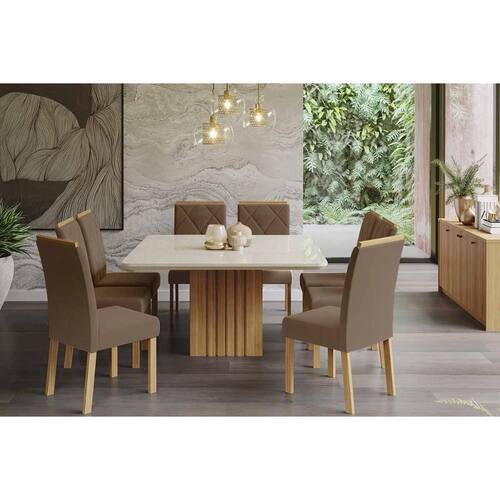 Sala de Jantar Completa Ana Tampo Madeirado c/ Vidro 130x130cm e 8 Cadeiras Fernanda Cinamomo/Off White - Carvalho/Suede Joli Capuccino - Cimol Abaixo segue os produtos do KIT: Sala de Jantar Completa Ana Tampo Madeirado c/ Vidro 130x130cm e 8 Cadeiras Fernanda Cinamomo/Off White - Carvalho/Suede Joli Capuccino - Cimol