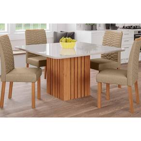 Mesa de Sala Jantar Ana c/ Tampo Madeirado c/ Vidro 130x80cm Nature/Off White - Cimol