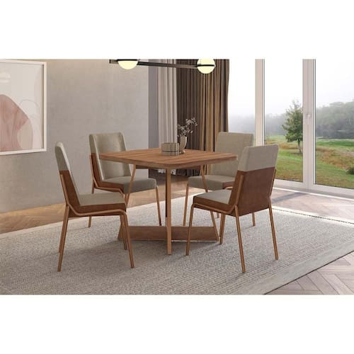 Sala de Jantar Completa Átria 1593 Aço c/ Tampo Madeirado 90x90cm e 4 Cadeiras Hug Rose/Freijo/Nogal - Rose/Areia - Caramelo - Carraro