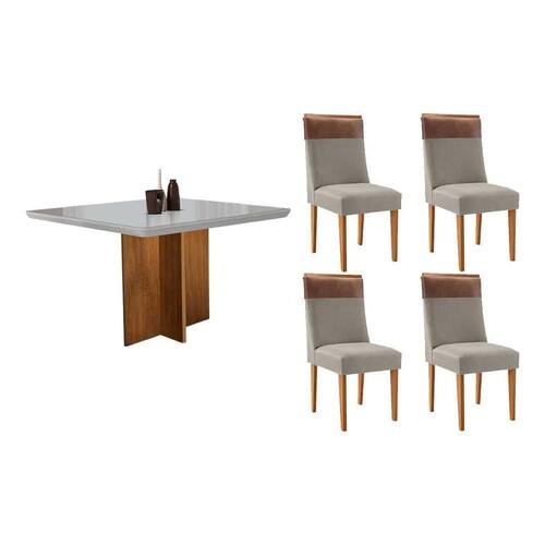 Sala de Jantar Completa Berlim c/ Tampo Madeirado c/ Vidro Canto Curvo 90x90cm e 4 Cadeiras Jaspe Naturale/Off White - Suede Capuccino - Rufato Abaixo segue os produtos do KIT: Sala de Jantar Completa Berlim c/ Tampo Madeirado c/ Vidro Canto Curvo 90x90cm e 4 Cadeiras Jaspe Naturale/Off White - Suede Capuccino - Rufato