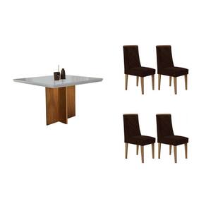 Sala de Jantar Completa Berlim c/ Tampo Madeirado c/ Vidro Canto Curvo 90x90cm e 4 Cadeiras Pietá Naturale/Off White - Suede Marrom - Rufato Abaixo segue os produtos do KIT: Sala de Jantar Completa Berlim c/ Tampo Madeirado c/ Vidro Canto Curvo 90x90cm e 4 Cadeiras Pietá Naturale/Off White - Suede Marrom - Rufato