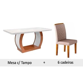 Sala De Jantar Completa C/ Tampo Madeirado C/ Vidro Canto Reto 180cm + 6 Cadeiras Imbuia/ow/creme - Branco